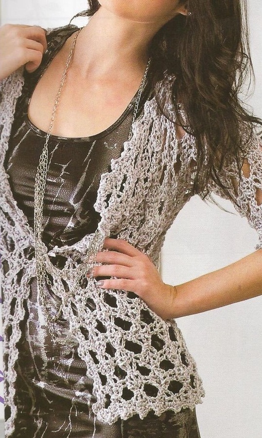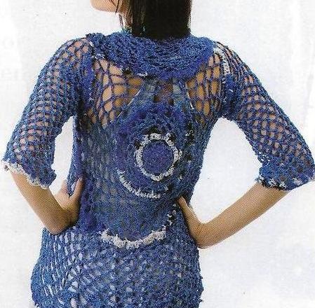 Saco al crochet con puntilla en el cuello y en los puños